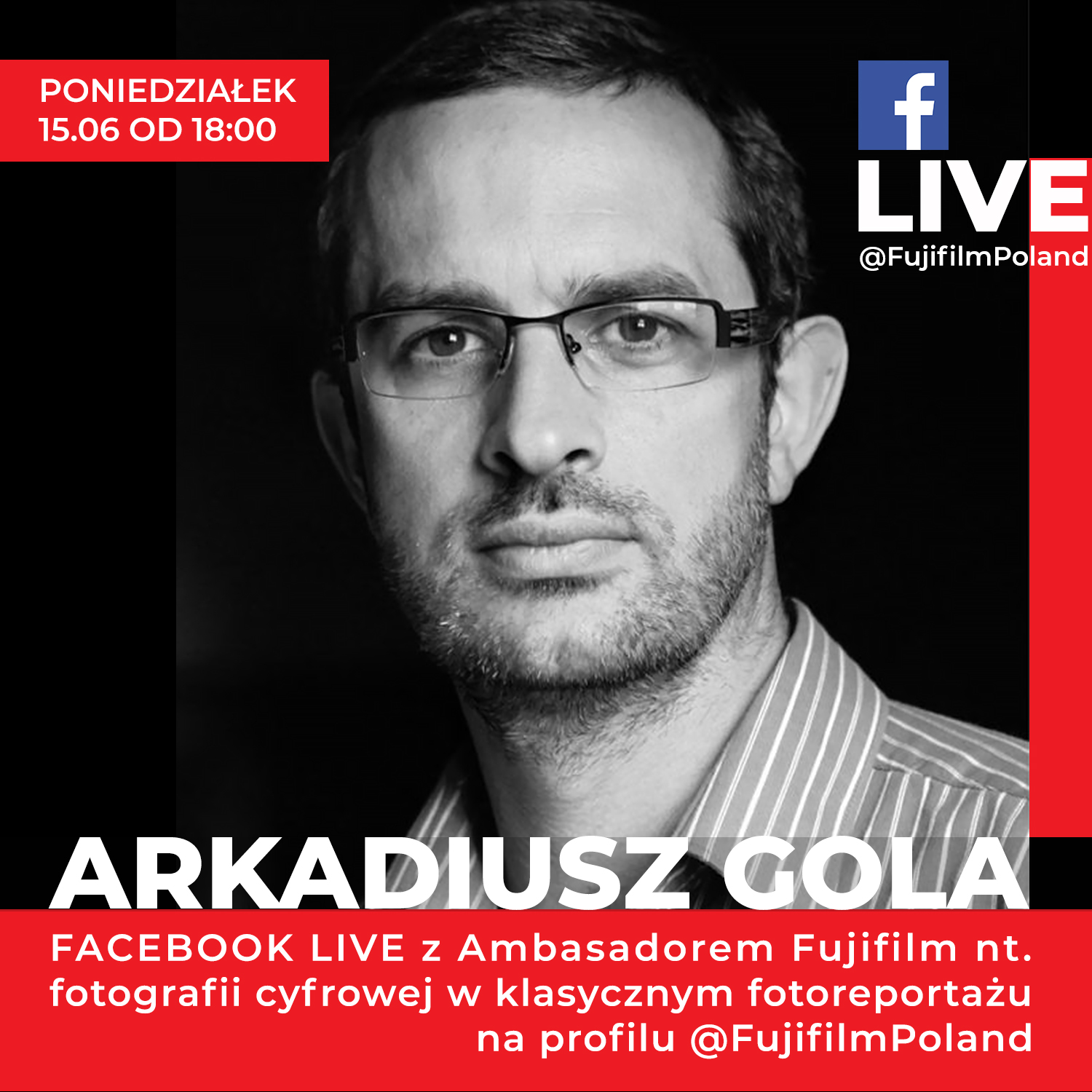 Arkadiusz Gola od prawie trzydziestu lat fotografuje na rodzinnym Górnym Śląsku. W swoich autorskich projektach często łączy zdjęcia współczesne, z tymi które wykonywał jeszcze na początku lat dziewięćdziesiątych, dlatego podczas spotkania porozmawiamy o ciągłości formalnych wyborów fotoreportera. Spytamy go też o wybory sprzętowe. Arkadiusz opowie o kulisach swojej pracy kiedyś i dziś oraz zdradzi jak w najbliższym otoczeniu poszukiwać ważnych dla fotografa dokumentalisty tematów.